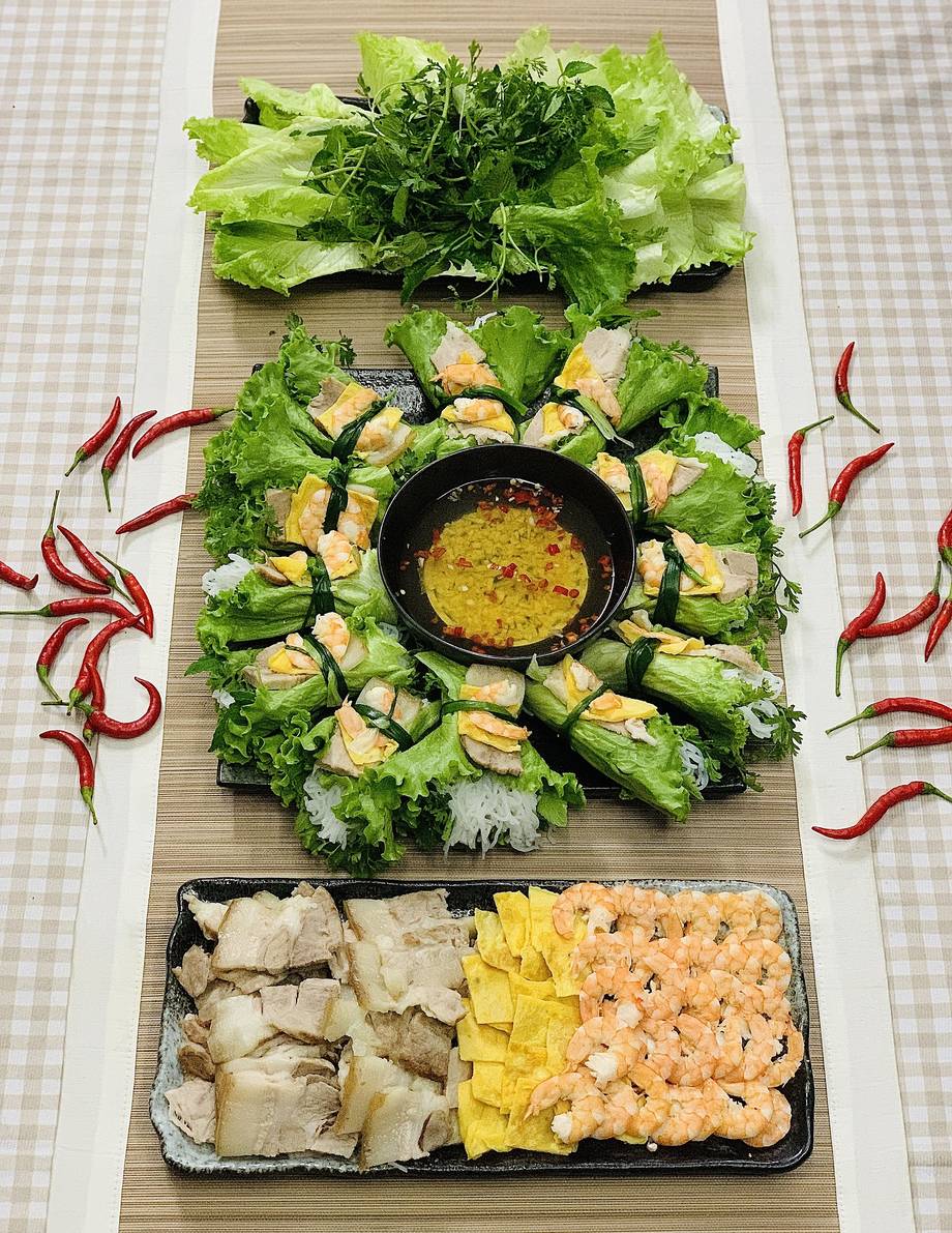 Thang cuốn tôm thịt kèm loại rau cho hương vị thơm ngon, đặc trưng.