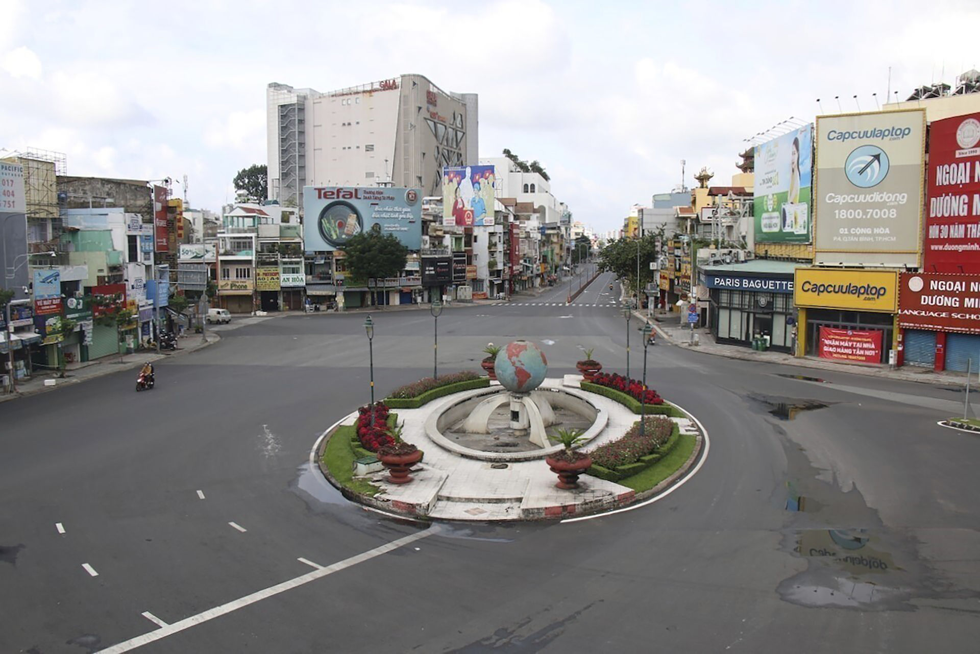 Bùng binh Lăng Cha Cả vắng tanh những ngày Sài Gòn bị COVID-19, “ai ở đâu yên đó.” (Hình: Bui Van Lanh/VNA via AP)