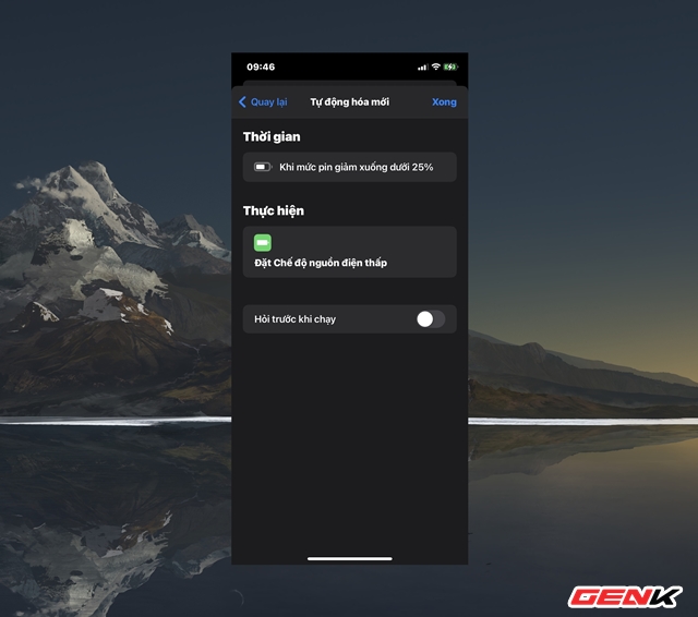 Mặc định thì việc kích hoạt chế độ tiết kiệm Pin trên iPhone là thủ công nhưng nếu tận dụng cách gợi ý trong bài này, bạn có thể thiết lập tự động hóa cho tác vụ này mỗi khi dung lượng pin đạt đến giới hạn nào đó mình muốn. Cụ thể như sau.