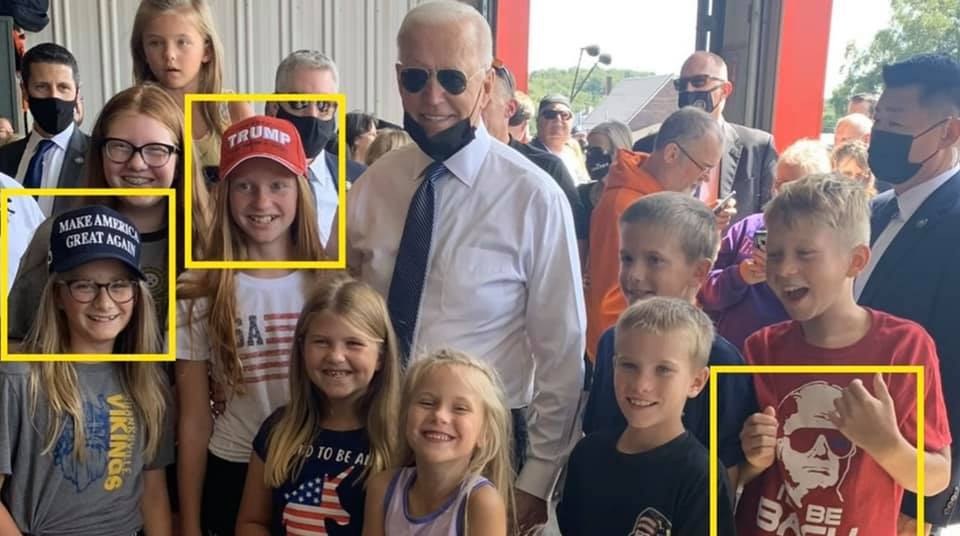 Bid3n đi tưởng niệm vụ 11 tháng 9 ,ko biết nghĩ sao lại nhào vô chụp ảnh với các em bé mà là ...fan...của tổng thống Trump.