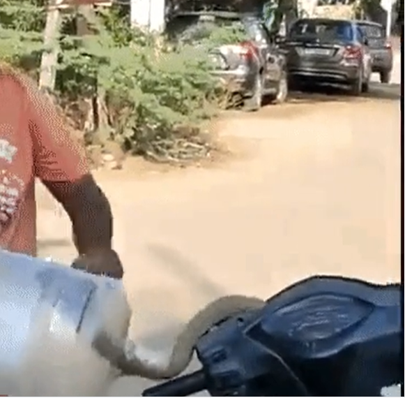 Sau đó, người ta phát hiện đầu con rắn thò ra từ phần lắp gương xe. Không ai dám mở ra xem thử nên buộc phải nhờ đến sự giúp đỡ của một thợ bắt rắn chuyên nghiệp. Đoạn video cho thấy cảnh người đàn ông dùng dụng cụ bẩy nắp phần đầu chiếc xe tay ga màu trắng ra, con rắn hổ mang đột ngột lao lên như muốn tấn công, đầy vẻ khiêu khích.