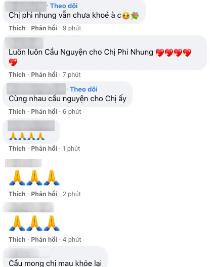 Đồng thời có hàng loạt ý kiến gửi lời hỏi thăm và chúc Phi Nhung sớm khỏe lại.