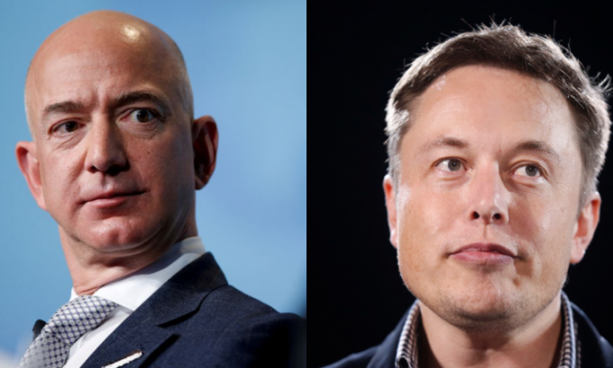 Tỷ phú Jeff Bezos (trái) và Elon Musk. Ảnh: Reuters.