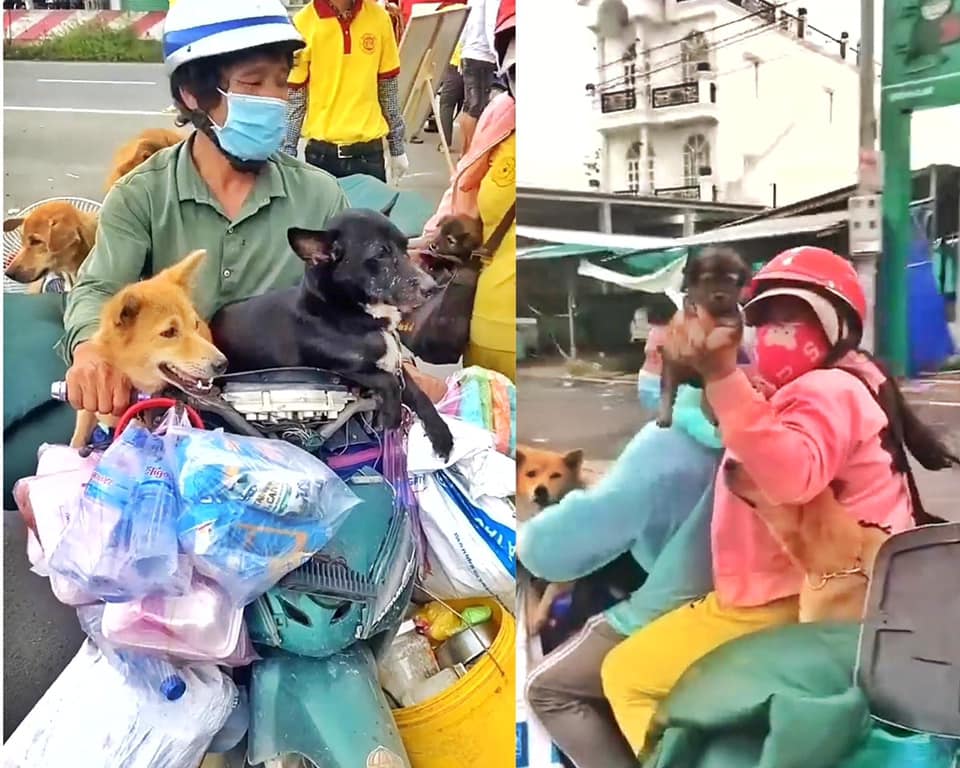 Vợ chồng anh Phạm Minh Hùng nuôi 4 con chó lớn, 11 con chó con, anh chị thương lũ chó như các con của mình. Anh làm phụ hồ, ngày kiếm được 250 ngàn nhưng dành 100 ngàn mua thức ăn cho chó. Bị phong toả, anh thất nghiệp hết đường sống, vợ chồng phải dắt nhau và dắt đàn chó về Cà Mau. Nhìn anh đi xe máy chở đàn chó ai cũng thấy vợ chồng anh yêu thương chúng như thế nào. Trên đường anh tặng người khác 2 con chó con, còn 13 con đều bị “lực lượng chức năng” của Cà Mau tiêu huỷ. Gia đình người em đi cùng mang theo 3 con chó và 1 con mèo cũng bị chính quyền Cà Mau tiêu huỷ nốt. Chẳng có bằng chứng khoa học hay thực tế nào cho thấy chó mèo lây cái thứ “đại dịch” này cho người cả.