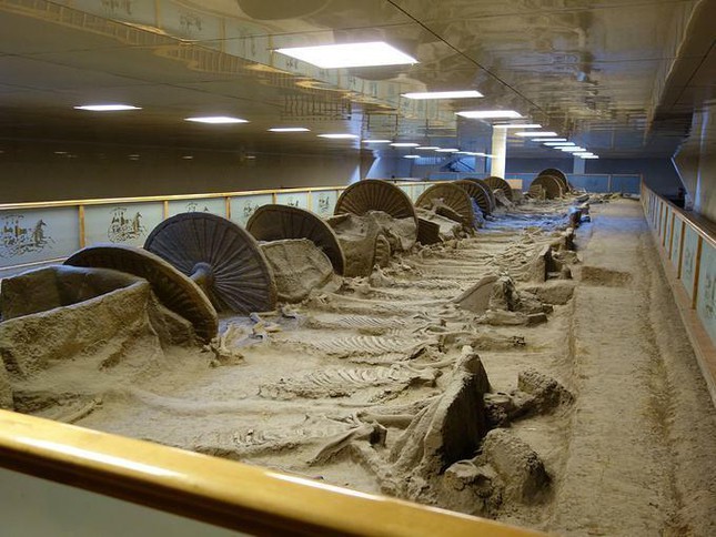 Đặc biệt, những con ngựa sau khi bị giết còn được sắp xếp theo đúng các tư thế hành động, như ngựa đang sẵn sàng lao vào cuộc chiến trong mộ cổ. Nhiều bộ xương được xếp nằm trước những chiến xa theo kiểu chiến xa ngựa kéo được sử dụng trong các trận chiến.