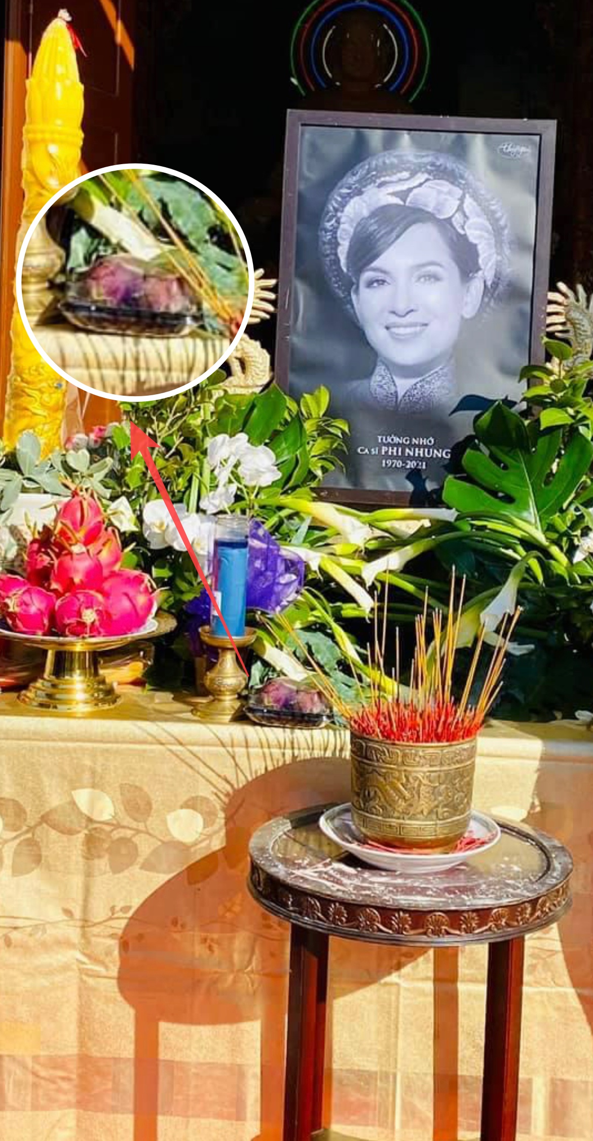 Tại bàn thờ cố ca sĩ Phi Nhung đặt tại chùa trong tang lễ hôm 12/10 xuất hiện hình ảnh 1 dĩa khoai lang gây xúc động