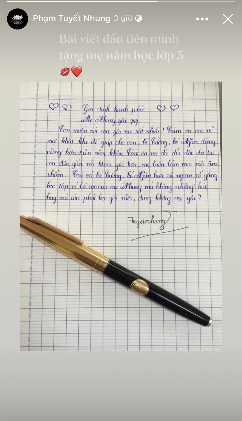 Bức thư tay hồi lớp 5 mà con nuôi Phi Nhung viết tặng mẹ