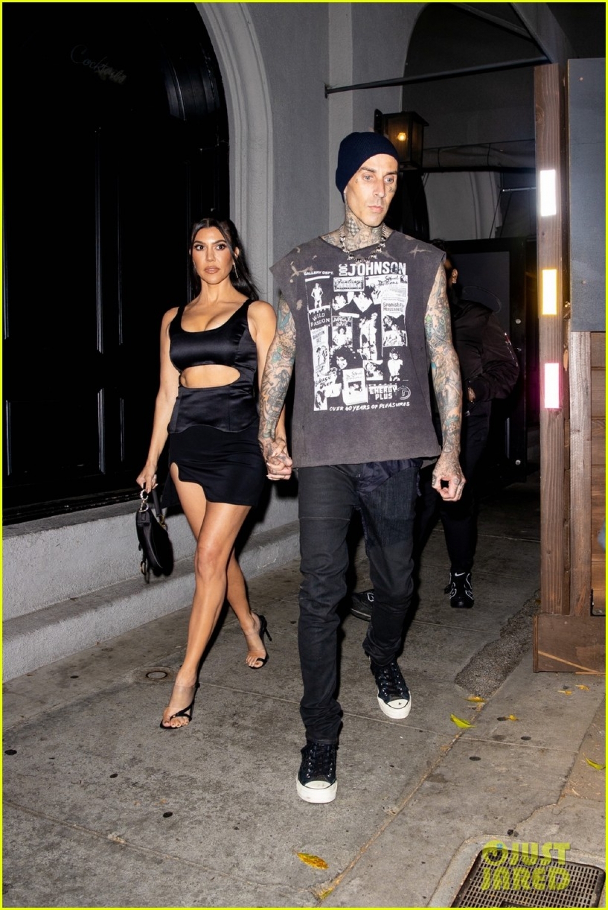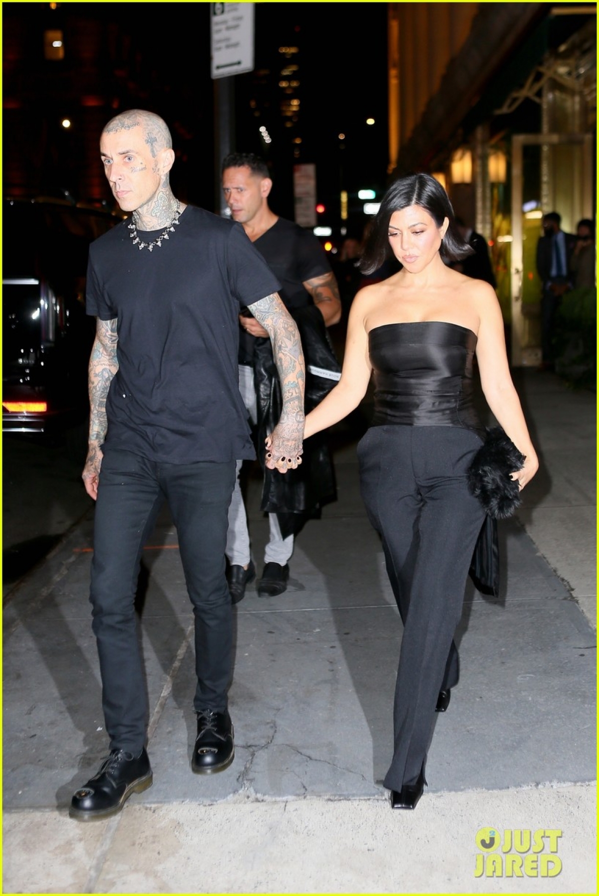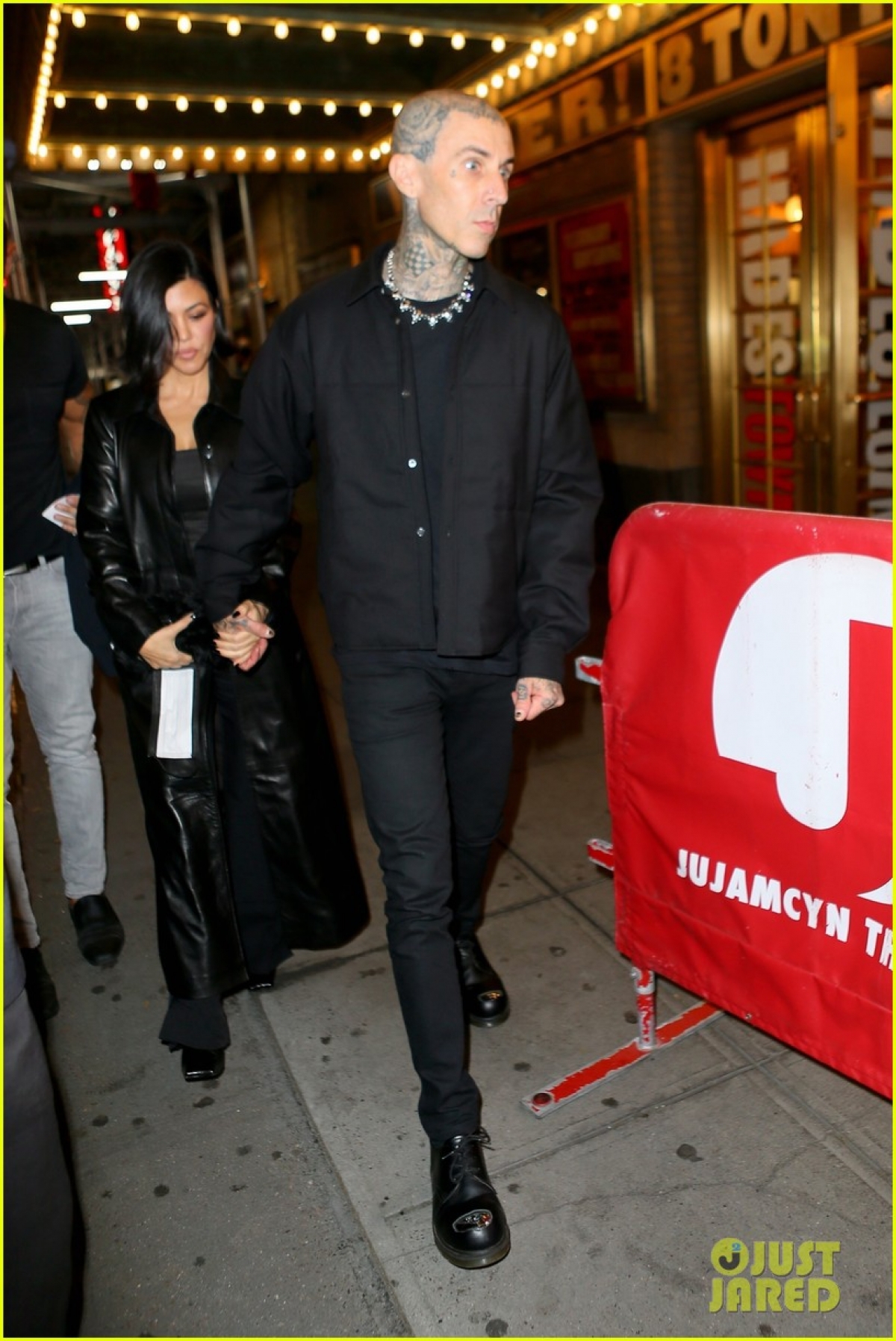 Kourtney Kardashian và Travis Barker tình tứ đi ăn tối và đến xem vở nhạc kịch "Hadestown" ở New York mới đây.