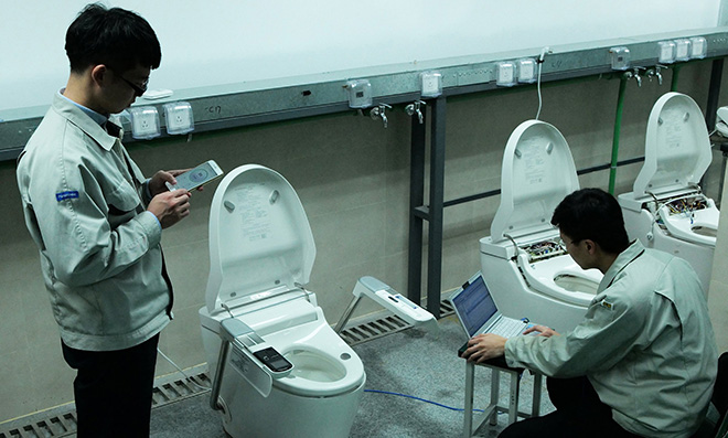 Theo một bài báo đăng trên The Wall Street Journal, các nhà nghiên cứu đã hợp tác với Izen, một nhà sản xuất phòng tắm của Hàn Quốc và hy vọng sẽ có nguyên mẫu vào cuối năm nay. Để phân biệt người dùng, Izen đã phát triển một máy quét có thể nhận ra các đặc điểm cơ thể của những người ngồi trong phòng tắm.