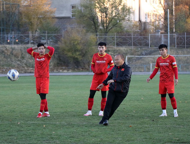 Ở buổi tập chiều 23/10, thời tiết tại Kyrgyzstan dễ chịu hơn với nắng ấm, độ ẩm thấp. Điều này đã giúp tâm lý các cầu thủ trở nên hứng khởi hơn, và HLV Park Hang Seo cũng tận dụng ngày đẹp trời để giải tỏa áp lực cho các học trò với những bài tập nhẹ nhàng đầy thư giãn, trong đó có một thử thách thú vị ở cuối buổi tập.Theo đó, ông thầy người Hàn Quốc tổ chức trò chơi vui nhộn bằng cách thử tài sút trúng xà ngang từ cự ly sát vòng 16m50, ai sút trúng trước sẽ được nghỉ trước. Kết quả, ông Park cùng với thủ môn Văn Toản và hậu vệ Văn Tới là những người rời sân cuối cùng.Liên quan đến buổi tập, HLV Park Hang Seo giảm cường độ vận động cho các học trò trong buổi tập chiều và chỉ triển khai những nội dung quen thuộc như phối hợp nhỏ ít chạm, giữ cự ly các tuyến và di chuyển chiến thuật.Trước đó, vào buổi sáng, các cầu thủ đã trải qua buổi tập thể lực tại phòng gym của khách sạn, dưới sự hướng dẫn của chuyên gia thể lực Cedric Roger.Ở buổi tập ngày 24/10, HLV Park Hang Seo quyết định chấp nhận di chuyển xa hơn để các cầu thủ được tập luyện trên mặt sân có chất lượng tốt hơn mặt sân hiện tại.