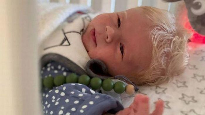Em bé Archie Stone sinh ra ở Wokingham, Berkshire với mái tóc dày, trắng như tuyết trước sự sửng sốt, ngạc nhiên của các nữ hộ sinh và bác sĩ.