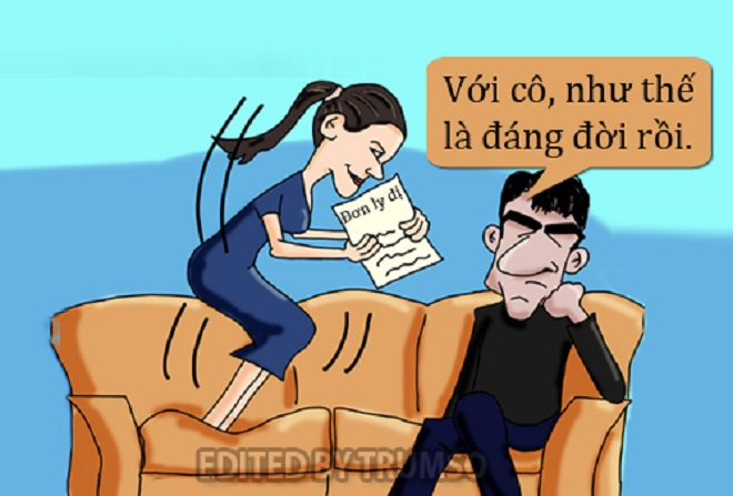 - Đơn ly dị đây, mời cô ký vào!