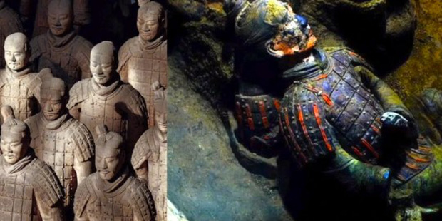 Màu áo của các chiến binh đất nung bị mai một do quá trình ô-xy hóa (Ảnh: Baidu)