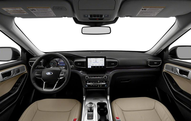Nội thất Explorer mới cũng thay đổi khá nhiều. Vô-lăng kiểu mới, phía sau là màn hình điện tử lớn kết hợp đồng hồ cơ. Cần số đổi sang dạng núm xoay. Màn hình 8 inch với Sync 3 đi kèm âm thanh B&O 12 loa cao cấp.