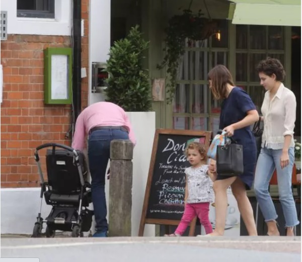 Lần hiếm hoi Rowan Atkinson xuất hiện cùng vợ trẻ và con gái nhỏ trên phố.