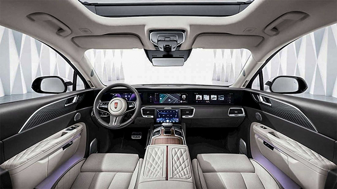 Các ghế ngồi truyền thống đã được thay thế bằng băng ghế dài và ghế xoay. Trong khi đó, bảng điều khiển theo phong cách “Universal Island” được thiết kế đặc biệt để có thể chứa các trang bị như tủ lạnh mini và ngăn chứa giày dép. Trần xe có màn hình OLED toàn cảnh hiển thị nội dung và có thể thay đổi màu sắc tổng thể của nội thất.