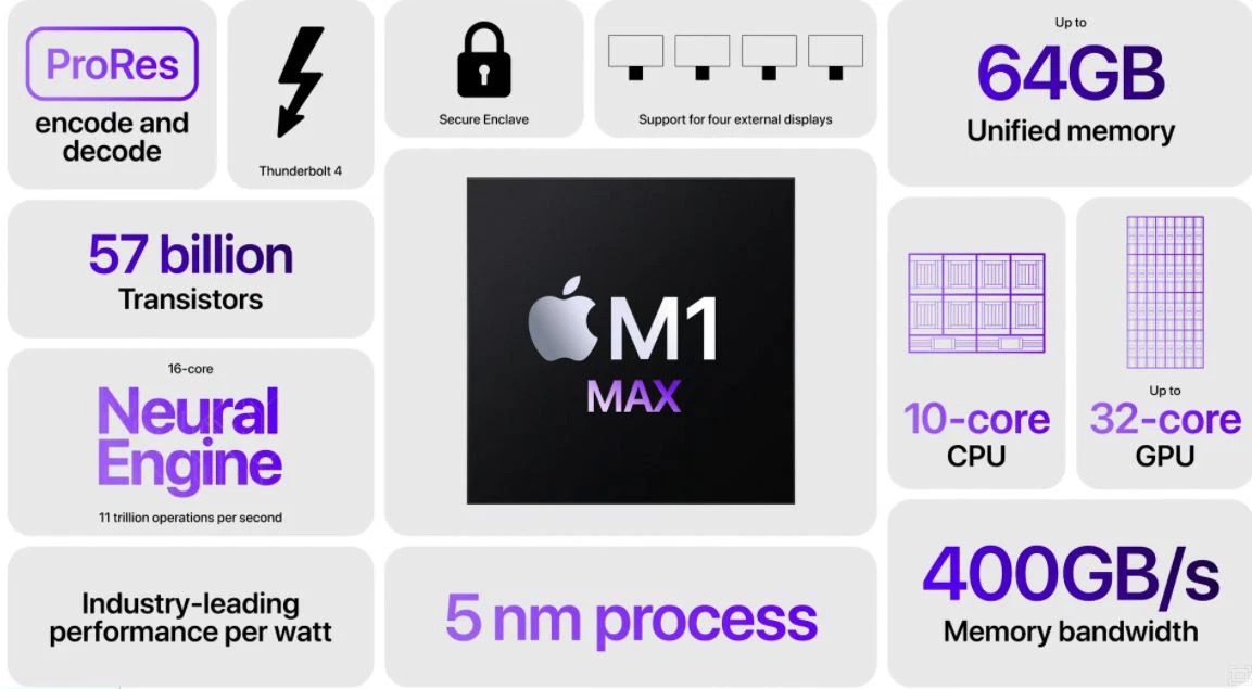 Năm ngoái, Apple công bố vi xử lý ARM đầu tiên của mình mang tên Apple M1, trang bị đầu tiên trên MacBook Air, MacBook Pro 13 inch và iMac mới, sau đó là trên iPad Pro. Ngay từ khi ra mắt, con chip M1 của Apple đã tỏ ra vượt trội với hiệu năng mạnh mẽ nhưng lại tiêu tốn cực kỳ ít năng lượng. Năm nay, Apple công bố phiên bản nâng cấp của vi xử lý M1 là M1 Pro và M1 Max, trang bị trên dòng MacBook Pro 14 inch và 16 inch mới với hiệu năng thậm chí còn vượt trội hơn nhiều với 10 nhân CPU và tới 32 nhân đồ hoạ.