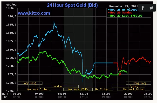 Chốt phiên giao dịch 29/11, mỗi ounce vàng thế giới giao ngay giảm 6,5 USD xuống 1.784 USD một ounce. Sang phiên sáng nay, giá vàng vẫn đang xoay quanh mốc này.