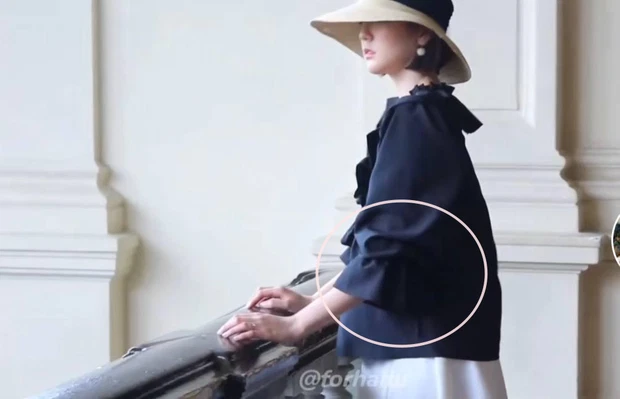 Đặc biệt, trên MXH còn đào lại hậu trường chụp ảnh của Hải Tú và phát hiện cô đang cố che khéo vòng 2. Có thể thấy, trong bộ ảnh này, Hải Tú ưu tiên chọn váy rộng thùng thình, ở góc nghiêng thì bụng lùm lùm thấy rõ. Tuy nhiên, không loại trừ khả năng “nàng thơ” của sếp Tùng bị góc chụp “dìm” nên trông tròn trịa khác thường.