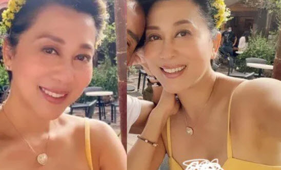 Trong chiếc váy dây vàng mỏng manh, vòng 1 mơn mởn như gái đôi mươi chiếm trọn sự chú ý. Nếu không nói tuổi, có lẽ chẳng ai ngờ đây lại là thân hình của người phụ nữ đã bước sang tuổi 56. Thử so sánh với những mỹ nhân trẻ trung khác trong showbiz cũng không quá chênh lệch. Gương mặt Kỳ Duyên khi không trang điểm tỉ mỉ chẳng để lộ vẻ nhợt nhạt, ngược lại trông rất hiền dịu.