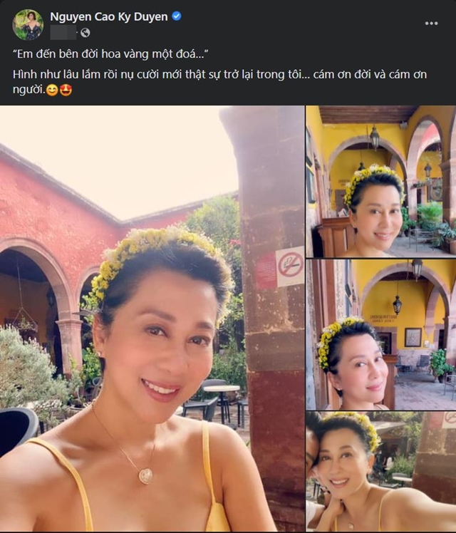 Mới đây, một lần nữa Kỳ Duyên cho thấy đẳng cấp của mình bằng loạt ảnh chụp cận mặt, khoe trọn nhan sắc. Như thường lệ, nữ MC lại cho thấy tâm trạng yêu đời: “Em đến bên đời hoa vàng một đóa… Hình như lâu lắm rồi nụ cười mới thật sự trở lại trong tôi. Cảm ơn đời và cảm ơn người”.