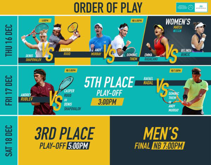 Hai trận tứ kết đơn nam sẽ bắt đầu diễn ra vào 16/12, sau đó 1 ngày là 2 trận bán kết và tiếp đó 2 là 2 chung kết.