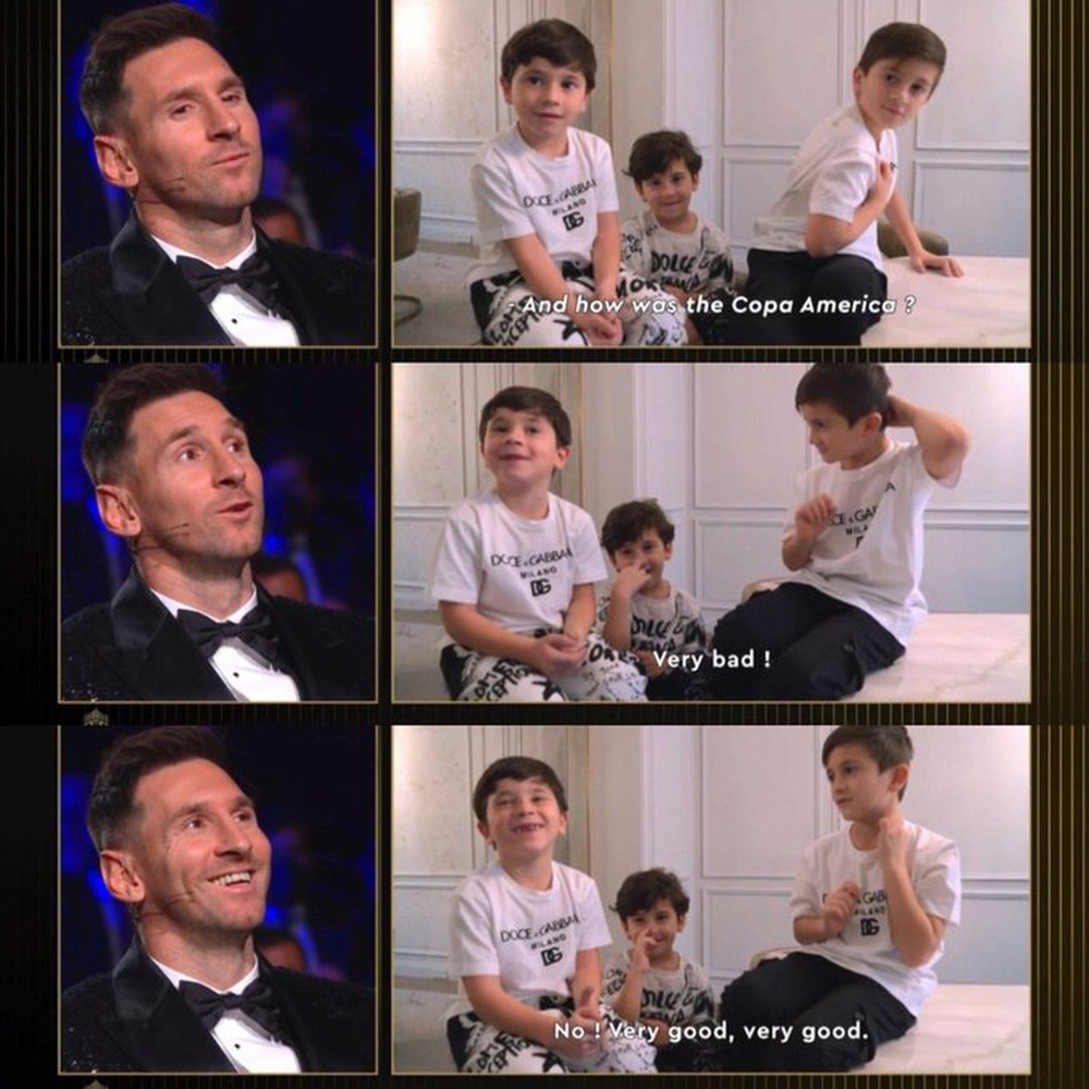 Old  Default Xúc động sau khi vừa giành QBV, Messi cũng phải bật cười bởi câu nói bất ngờ của cậu quý tử