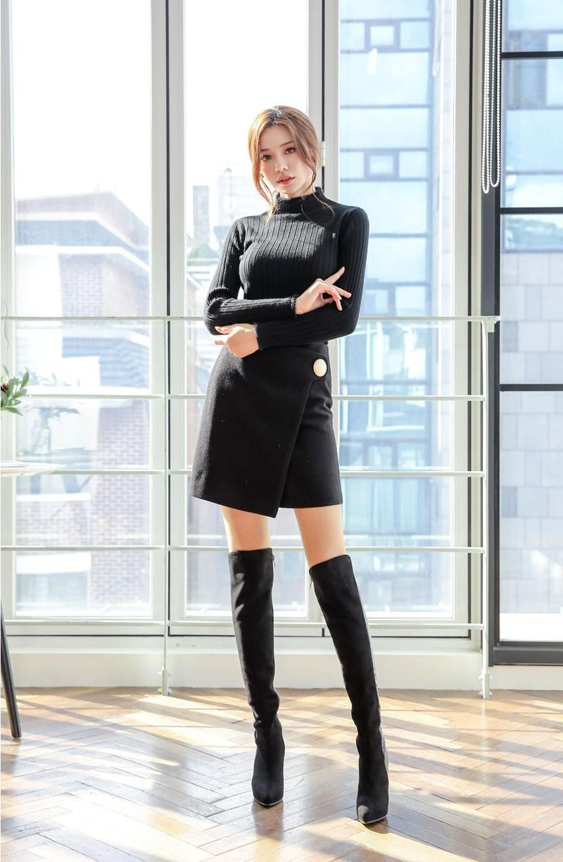 Boot đùi màu đen không chỉ giúp nàng hack dáng mà còn rất ấm áp trong màu lạnh. Có 2 dạng boot đùi phổ biến nhất là boot nhung và boot da màu đen.