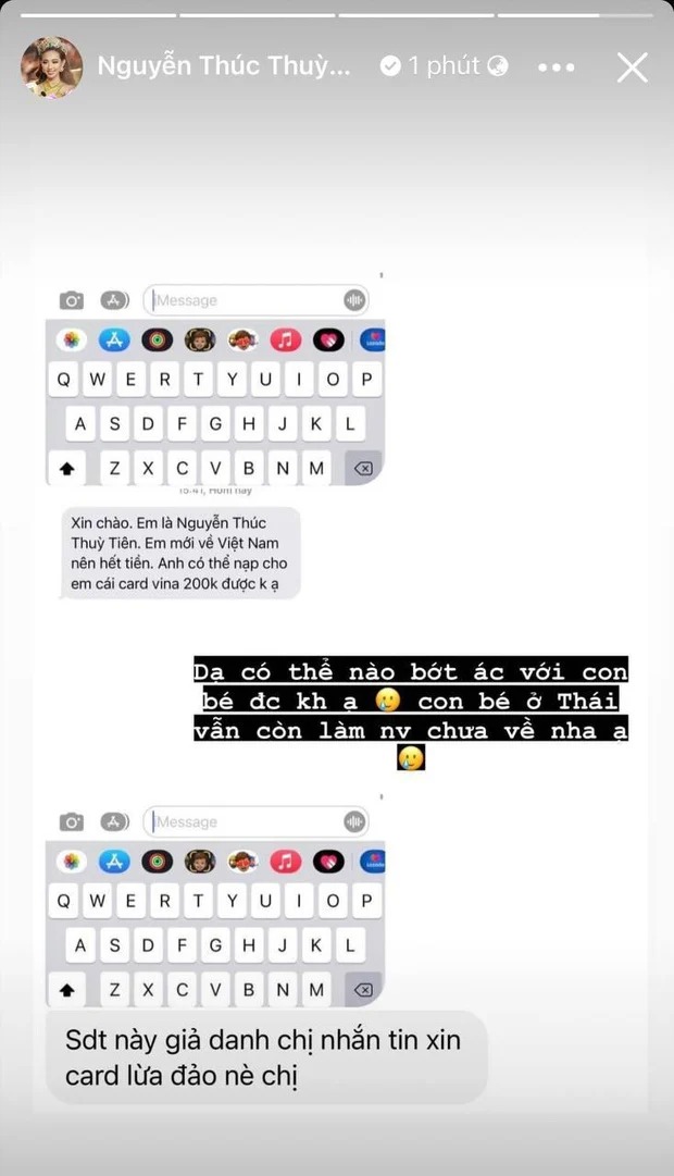 Kể từ khi đội trên đầu chiếc vương miện danh giá Miss Grand 2021, Thuỳ Tiên liên tục gặp ồn ào không đáng có. Hết câu chuyện bị chơi xấu thì mới đây, Thuỳ Tiên vừa thông báo cô gặp thêm "biến" tại Việt Nam. Có nhiều người giả danh cô, bịa chuyện Thuỳ Tiên đã về nước nhưng hết tiền nên mượn tạm... 200 nghìn đồng nạp tiền điện thoại.