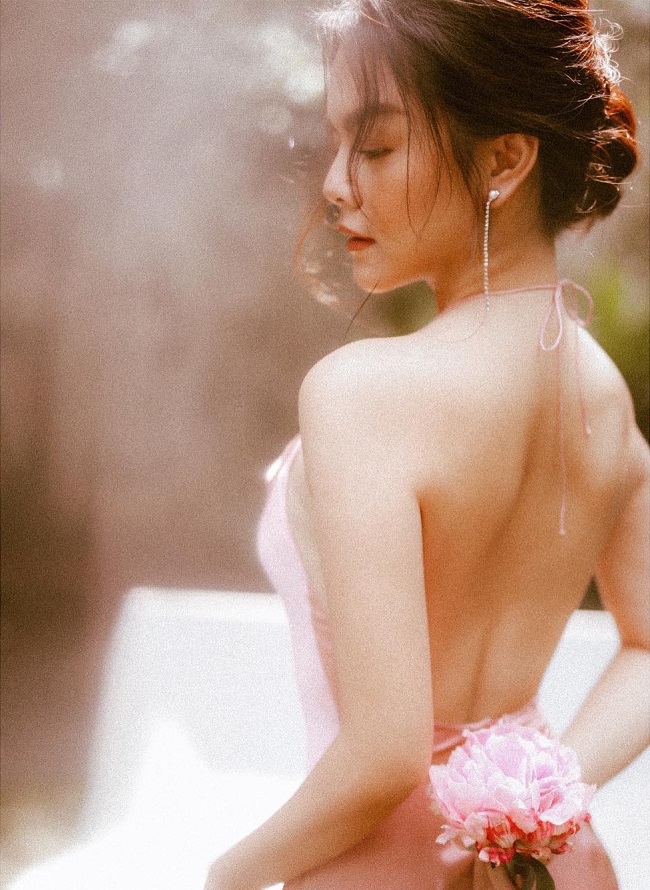 Diễm My 9X "đốt mắt" người hâm mộ trong bộ váy chất liệu lụa gợi cảm khoe võng lưng sexy.