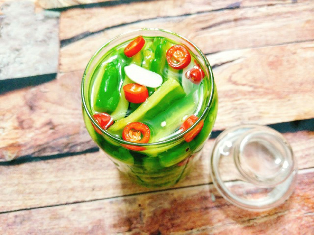 Bước 5: Xếp khổ qua vào hũ thủy tinh sạch sau đó đổ nước giấm đường và tỏi ớt vào cùng, sao cho ngập khổ qua là được.