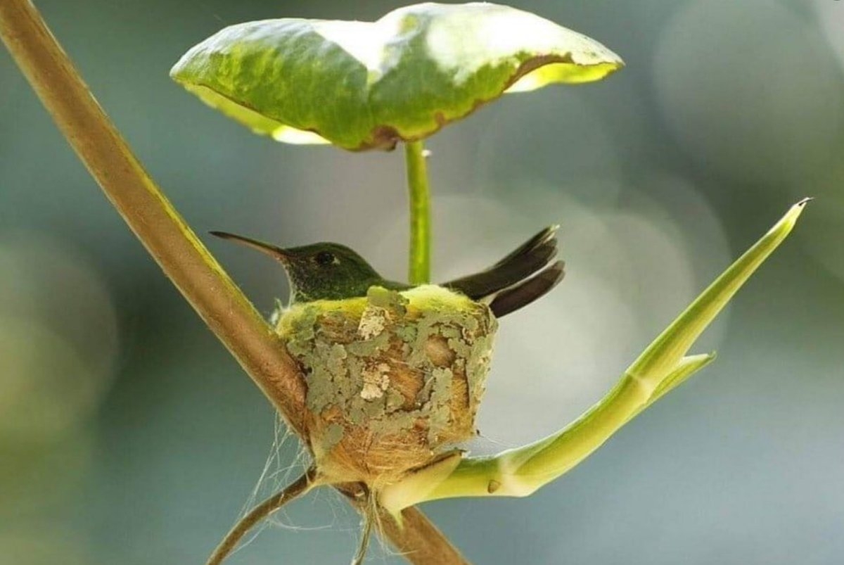 Chiếc tổ độc đáo và xinh xắn của một chú chim ruồi.