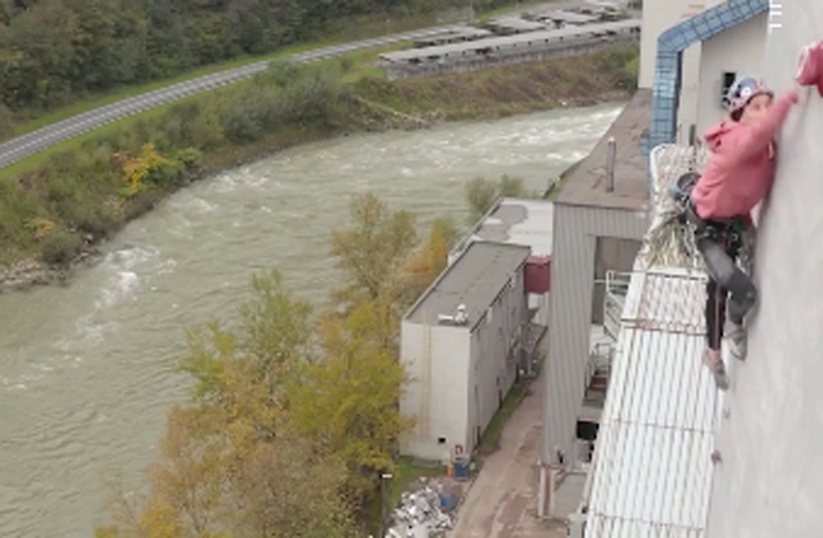 Đoạn video ghi lại hình ảnh hai nhà leo núi Slovenia Janja Garnbret và Domen Skofic chinh phục thành công cột ống khói cao nhất châu Âu vào năm 2020.