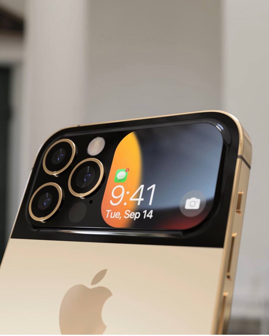 Không có quá nhiều thông tin được nhà thiết kế gửi gắm khi tung ra bản concept này. Máy vẫn sẽ có thiết kế vuông vức như thế hệ iPhone 12 và iPhone 13. Các nút vật lý, khe SIM không có nhiều sự thay đổi. Cụm 3 camera vẫn được giữ nguyên với độ lồi tương đối lớn. Tuy nhiên, điểm khiến người dùng ấn tượng không chỉ có màn hình gập mà còn có màn hình phụ phía sau đặt gần cụm camera trông khá thời trang. Đây là nơi để hiển thị thông báo, thời gian và một số thông tin khác.