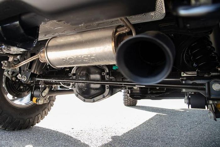 Chưa hết, bộ sửa đổi của Roush còn có hệ thống ống xả bằng thép không gỉ "hàng thửa" vừa giúp mang lại âm thanh đanh thép hơn vừa hứa hẹn cải thiện khoảng sáng gầm cũng như góc thoát của xe. Chiếc Ford Bronco bản độ sẽ được "cưỡi" trên bộ mâm 5 chấu 17 inch.