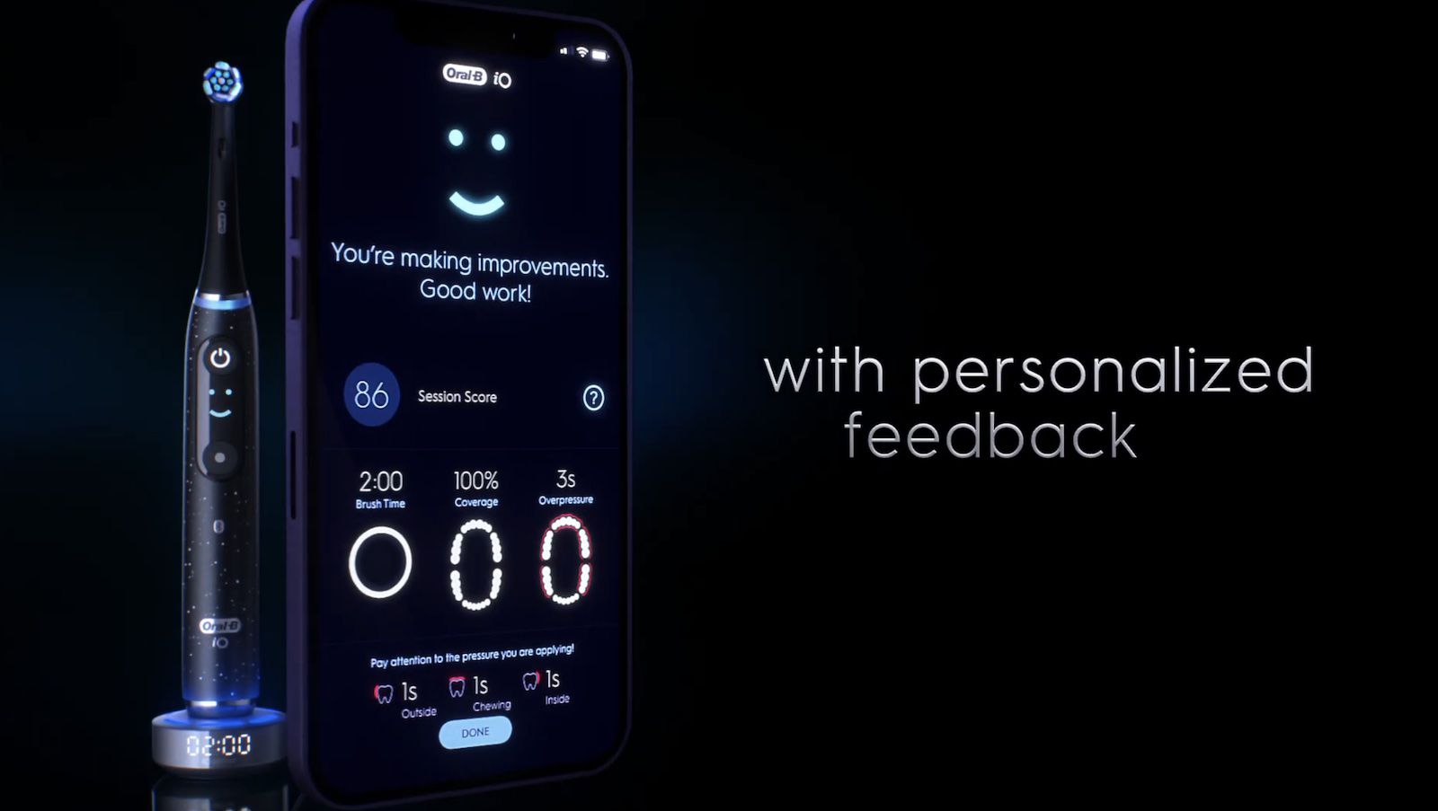 Một tính năng quan trọng mới được đưa lên iO10 là thông tin quá trình đánh răng theo thời gian thực, được tích hợp trực tiếp vào đế sạc của bàn chải, cho phép bạn theo dõi thời gian đánh răng, áp lực và phạm vi đã đánh mà không cần mang smartphone vào phòng tắm. Dữ liệu đánh răng của bạn sau đó sẽ đồng bộ hóa với ứng dụng Oral-B để hiểu rõ hơn về thói quen đánh răng của bạn.