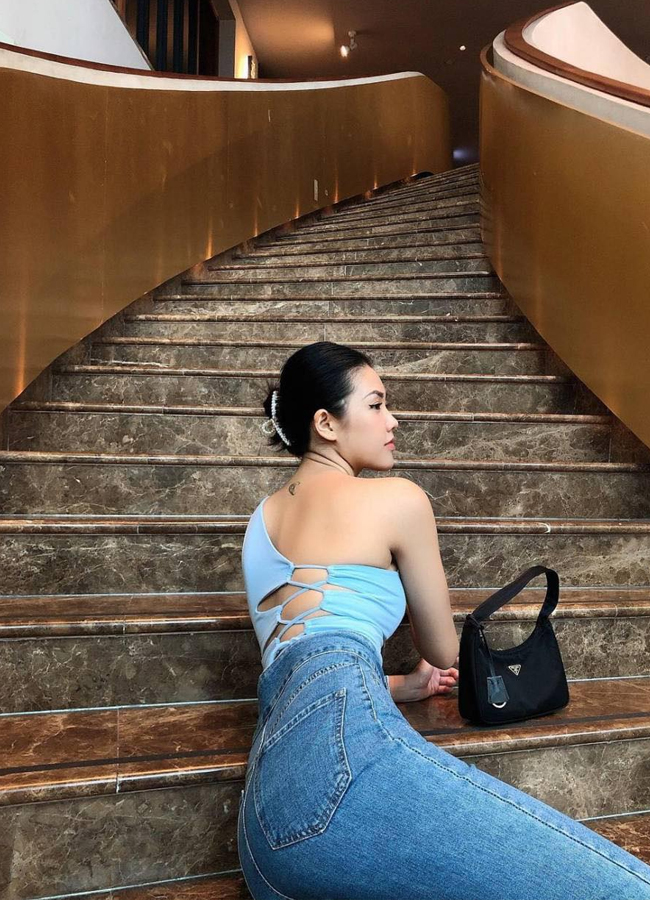 Cô yêu thích những thiết kế áo bắt mắt kết hợp quần jean ôm sát cơ thể.
