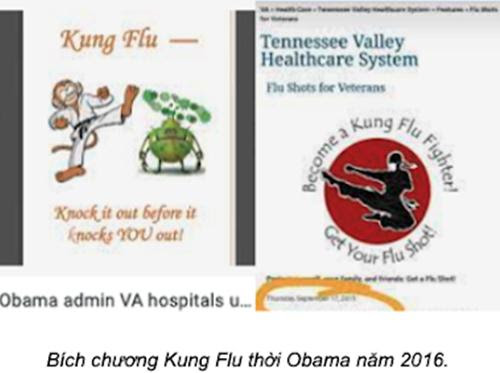 Năm 2016, một loại vi khuẩn cúm có tên là H7N9 từ Tàu bay qua tấn công Mỹ khiến cả triệu người bị nhiễm, tuy không nhiễm và chết nhiều như bây giờ. Khi đó, chính quyền Obama-Biden mở ra chiến dịch ngăn chặn, tung ra nhiều bích chương cổ vỏ dân chúng chống dịch. Chính quyền Obama-Biden sáng chế ra một khẩu hiệu, gọi chiến dịch là chiêu võ ‘Kung Flu’, nhái theo ‘kung fu’ là danh từ dùng để chỉ võ thuật Tàu. Cả nước chấp nhận khẩu hiệu đó vì nghe vui vui. Chẳng có ông bà Mỹ gốc Tàu nào phản đối, hay bị nhột vì kỳ thị.