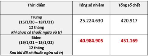 * Sau đó, cụ Biden lãnh đủ 2 biến thể khủng khiếp nhất là Delta từ tháng 7/2021 và Omicron từ tháng 12/2021. Nhìn vào biểu đồ, thấy ngay số nạn nhân dưới thời Biden nhiều hơn xa dưới thời Trump.