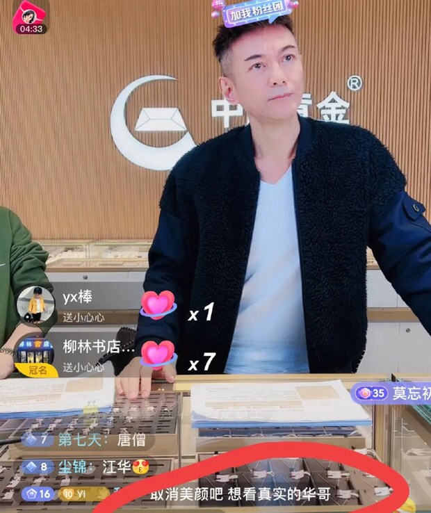 Theo QQ, nam diễn viên đình đám một thời của đài TVB Giang Hoa thu hút sự chú ý khi livestream bán vàng. Buổi livestream thu hút kha khá lượng người tham gia, ai nấy đều tràn vào hỏi thăm nam diễn viên nhưng chỉ "chốt" được chưa đến 100 đơn.