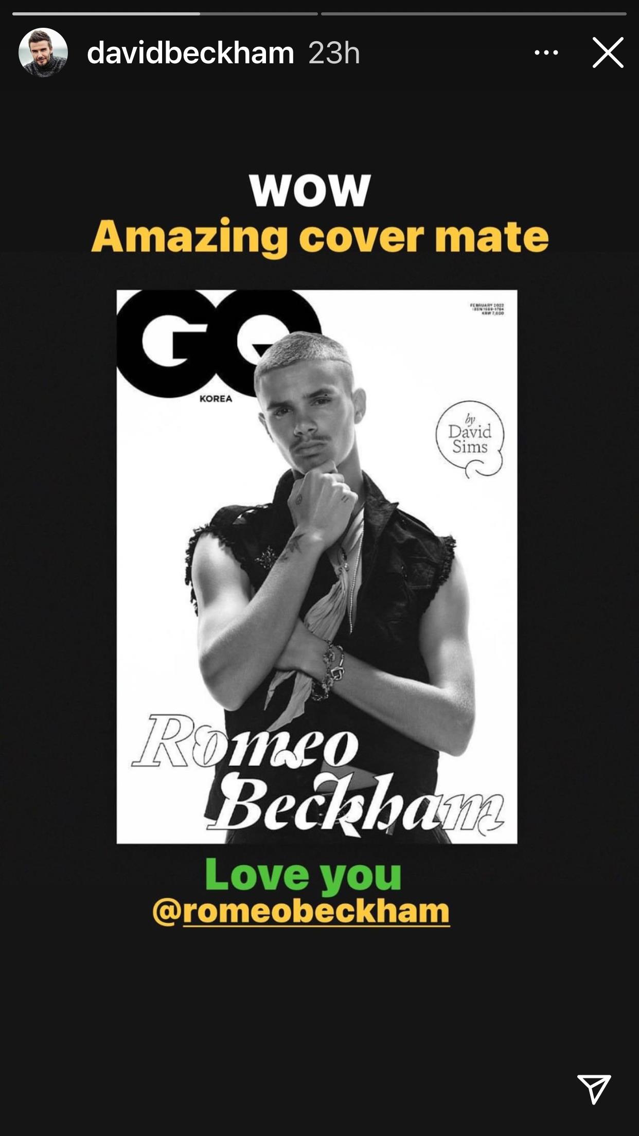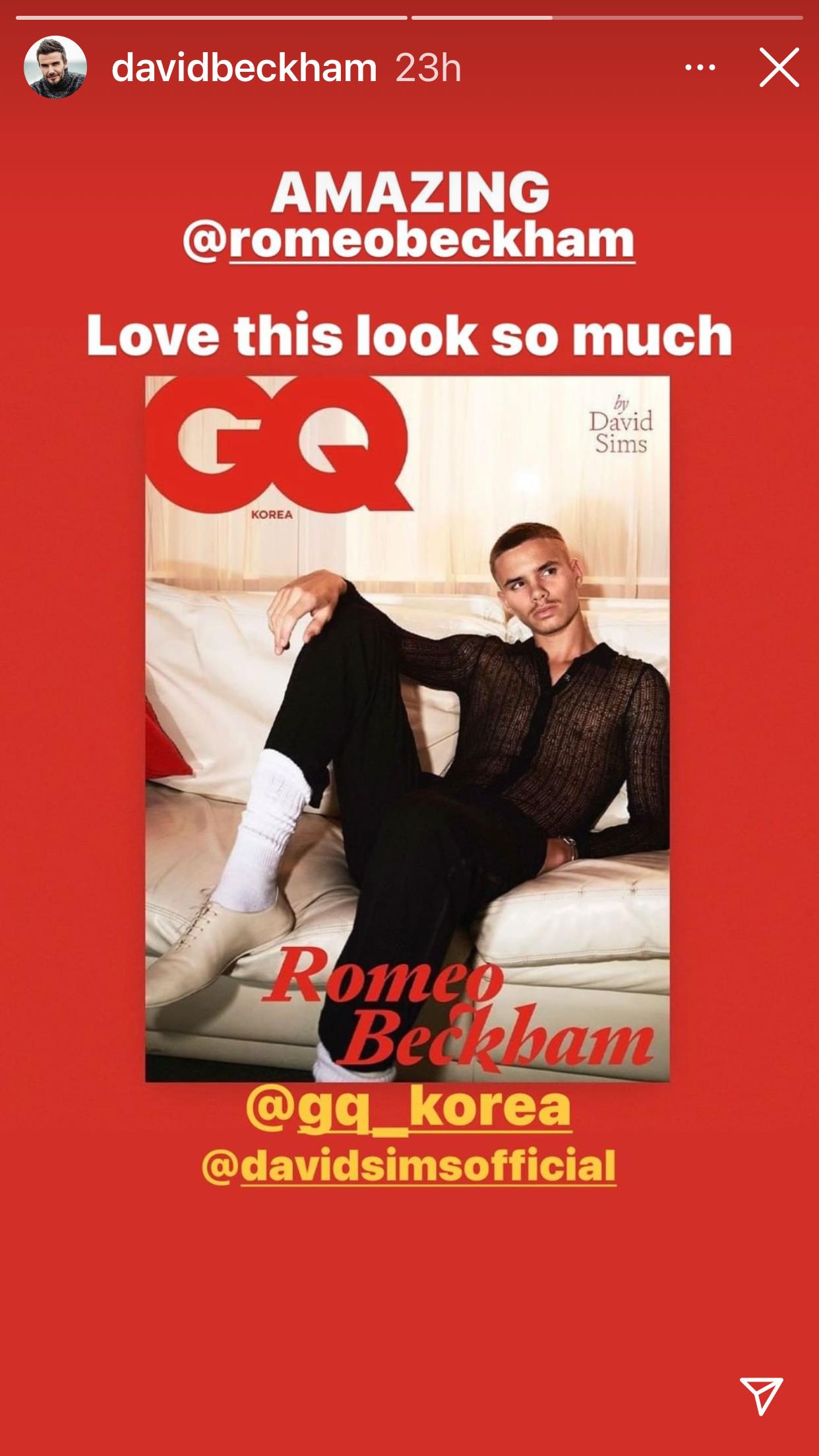 David Beckham cũng không khỏi phát cuồng vì cậu con trai yêu quý: "WOW, đúng là 1 người mẫu tạp chí tuyệt vời"," Yêu con @Romeobeckham"