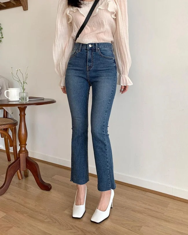 Để lộ mắt cá chân sẽ giúp đôi chân cũng thon thả thanh mảnh hơn nhiều. Quần jeans/ quần vải lửng gấu sẽ hoàn thành tốt nhiệm vụ này. Nếu thiết kế áo đã điểm xuyết nhiều chi tiết thì một kiểu quần lửng gấu sẽ là hoàn hảo nhất lúc này.