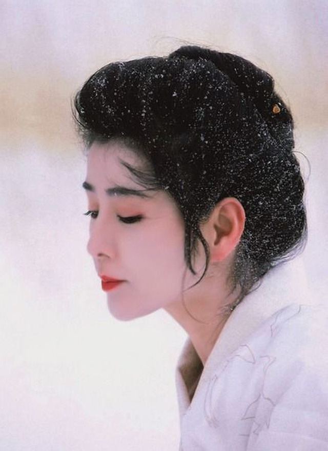 Hình ảnh Sayuri Yoshinaga diện kimono giữa trời tuyết trắng trở thành khoảnh khắc huyền thoại cho đến tận bây giờ. Mái tóc đen như gỗ mun, môi đỏ mỏng tầm xuân cùng làn da ửng hồng càng làm nổi bật lên từng đường nét trên gương mặt của bà.