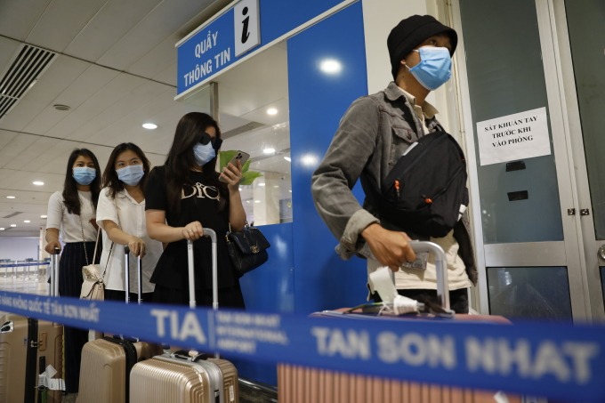 Hành khách chờ lấy mẫu xét nghiệm tại sân bay Tân Sơn Nhất vào tháng 5/2021. Ảnh: Hữu Khoa.