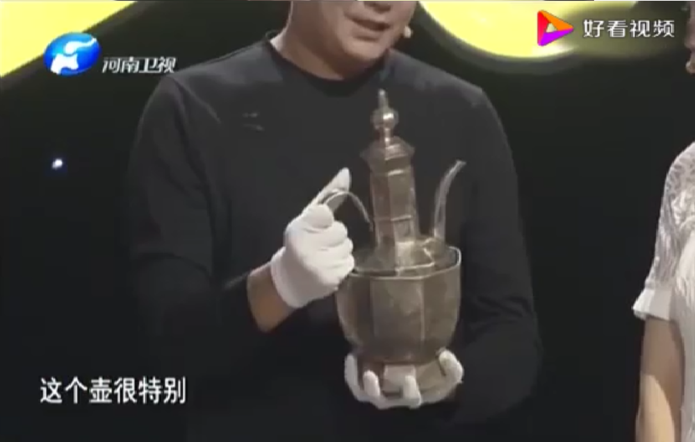 Chiếc bình rượu bạc trên sân khấu "Kiểm định bảo vật". Ảnh: Sohu