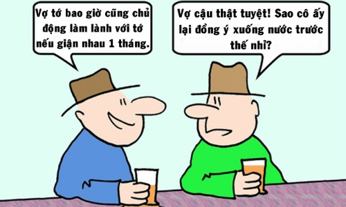 - Cũng thường thôi! Có lúc nào vợ tớ giận được quá một tháng đâu, lúc nào chiến tranh lạnh cũng là cô ấy bắt chuyện trước.