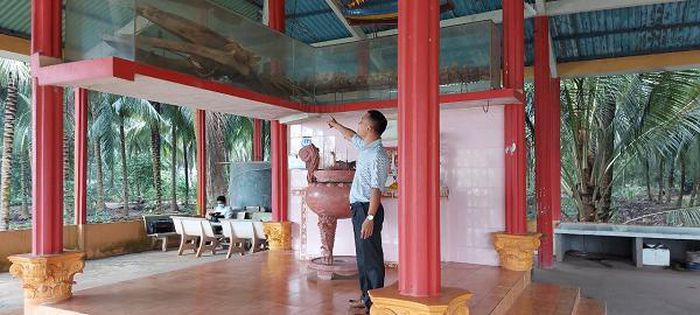Lăng Ông Thủy tướng ngự Nam hải ở ấp Thành Long, xã Thành Thới A, huyện Mỏ Cày Nam, tỉnh Bến Tre là nơi đang thờ “ Ông” - cách người dân gọi về loài cá voi nói chung và ở đây là bộ xương con cá voi xanh quý hiếm.