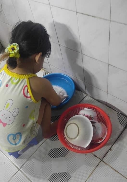 - "Ba ơi, con vừa mới giúp mẹ lau xong nhà rồi nè...!"