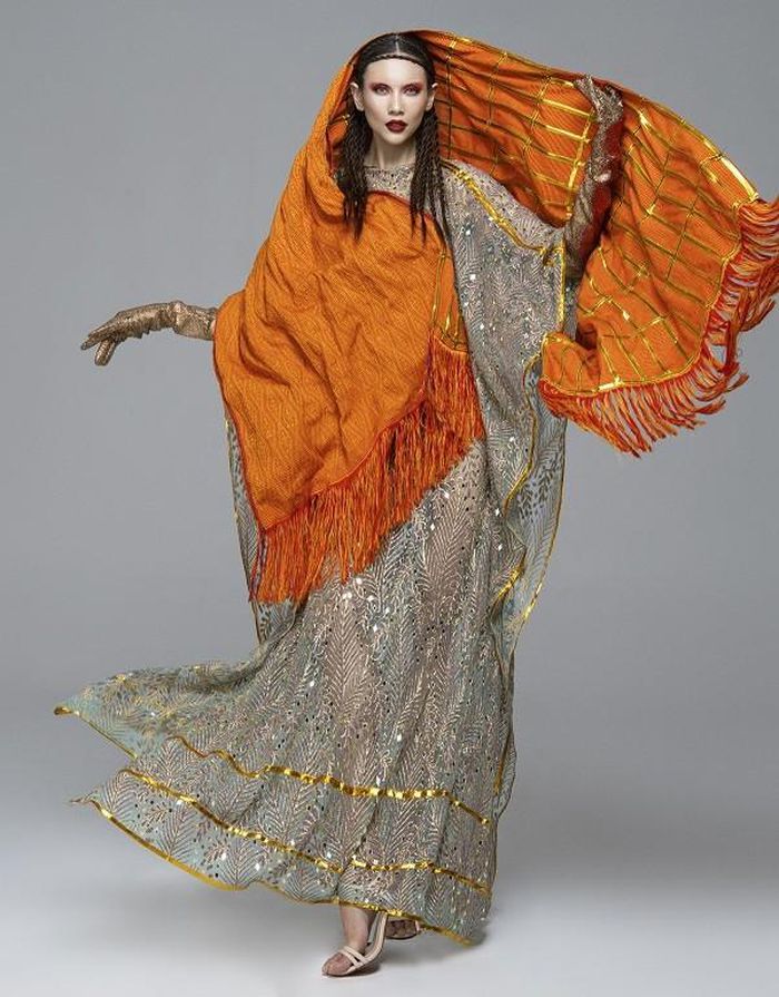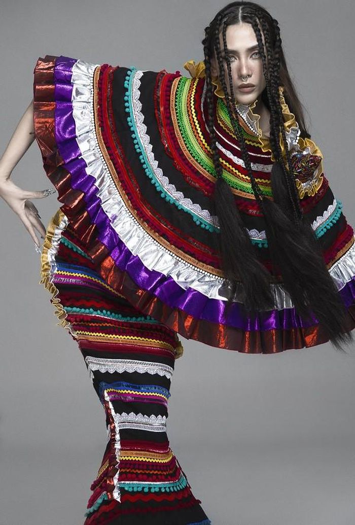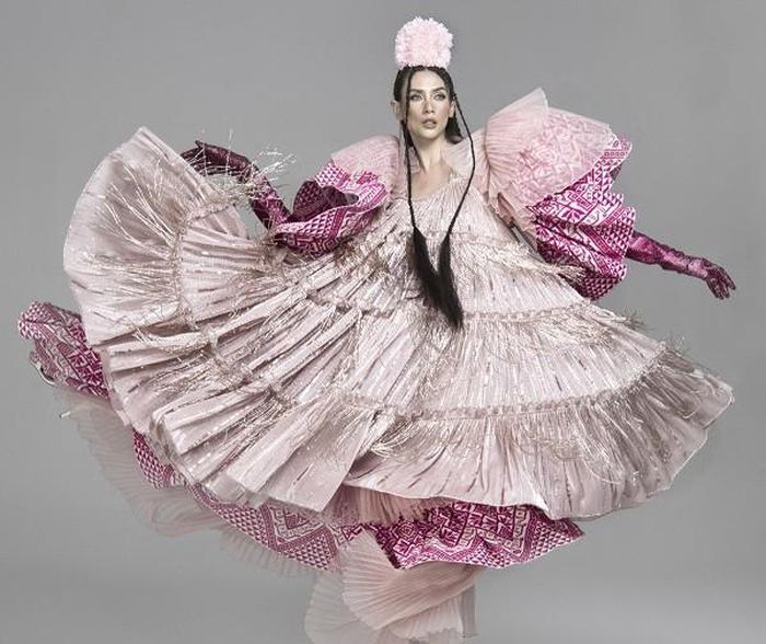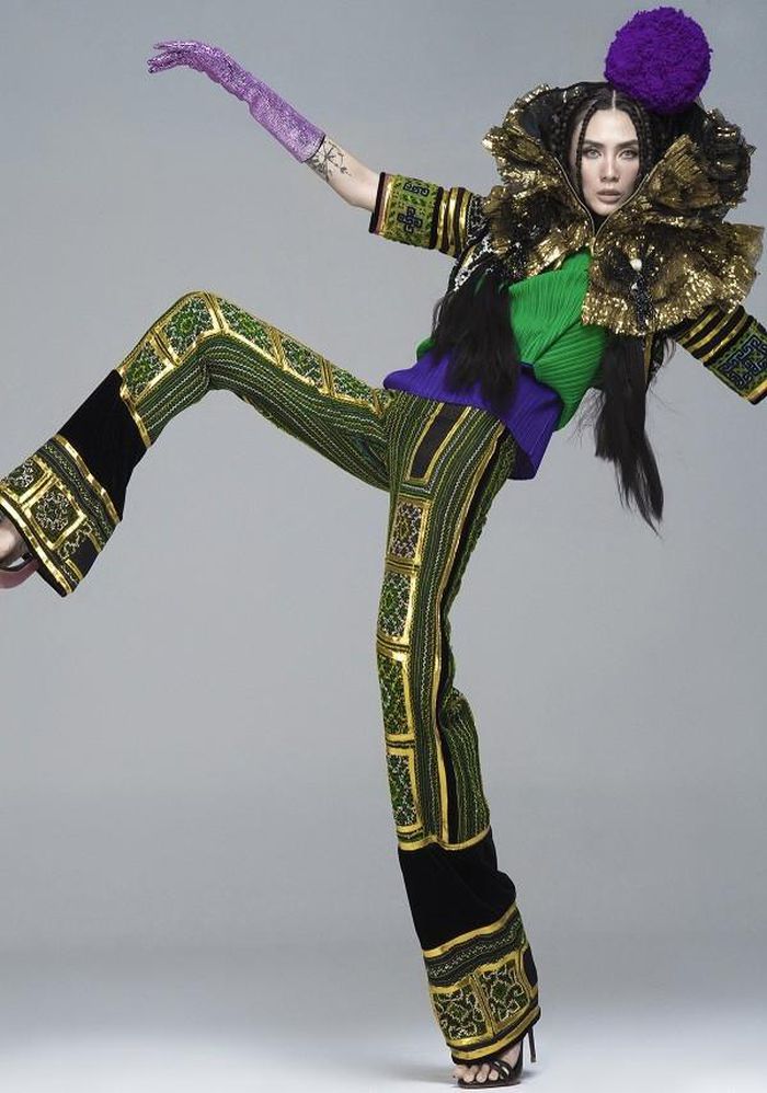 Võ Hoàng Yến diện những bộ trang phục thiết kế trên chất liệu thổ cẩm đến từ nhà thiết kế Lý Quí Khánh, Khoa Lỗ, Đắc Thắng, Minh Mì.
