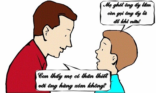 - Không bố ạ! - cậu con trai đáp - Mẹ ghét ông ta lắm, mẹ còn gọi ông ta là đồ khỉ nữa.
